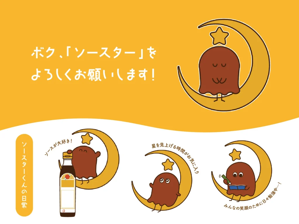 ちなみに、月星食品には、公式キャラクターの「ソースター」くんがいます。ソースのおいしさを知ってもらうために修行中とのこと。